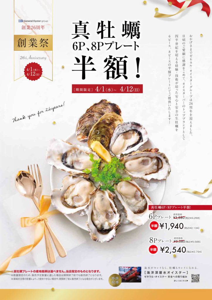 旬の真牡蠣6P/8Pプレートを今だけ半額にてご提供いたします!