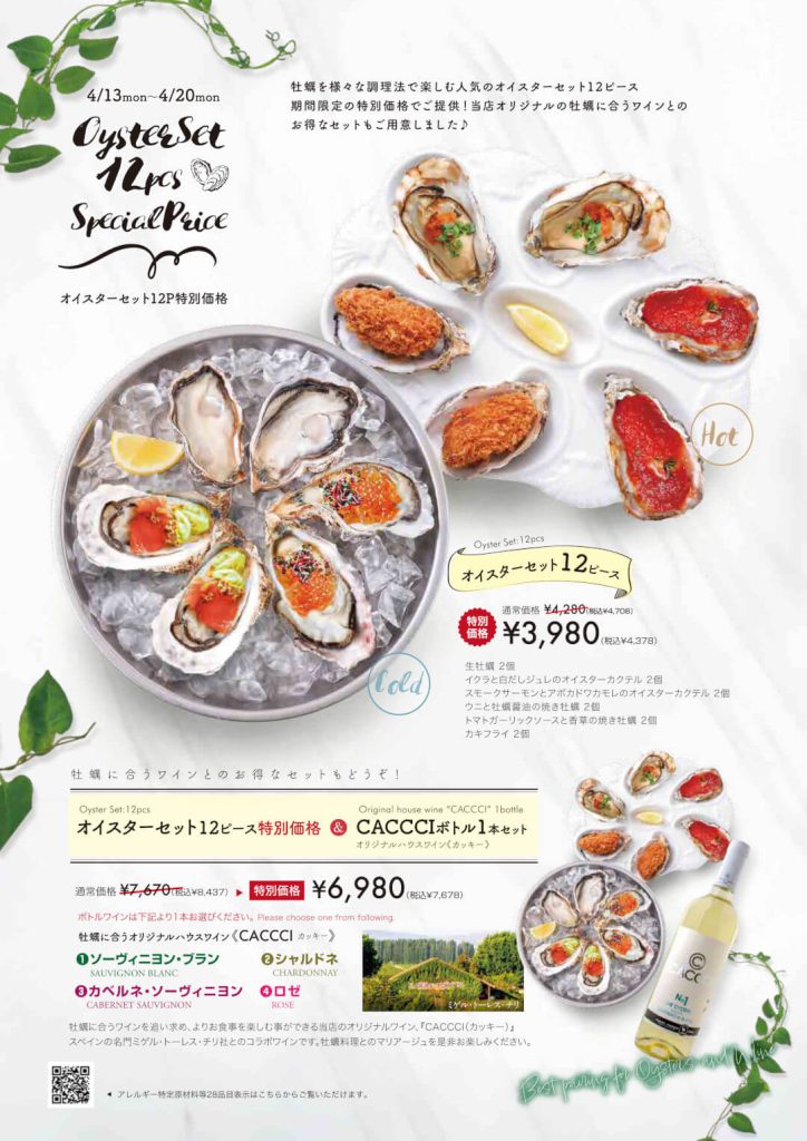 期間限定の特別価格でご提供!当店オリジナルの牡蠣に合うワインとのお得なセットもご用意いたしました。